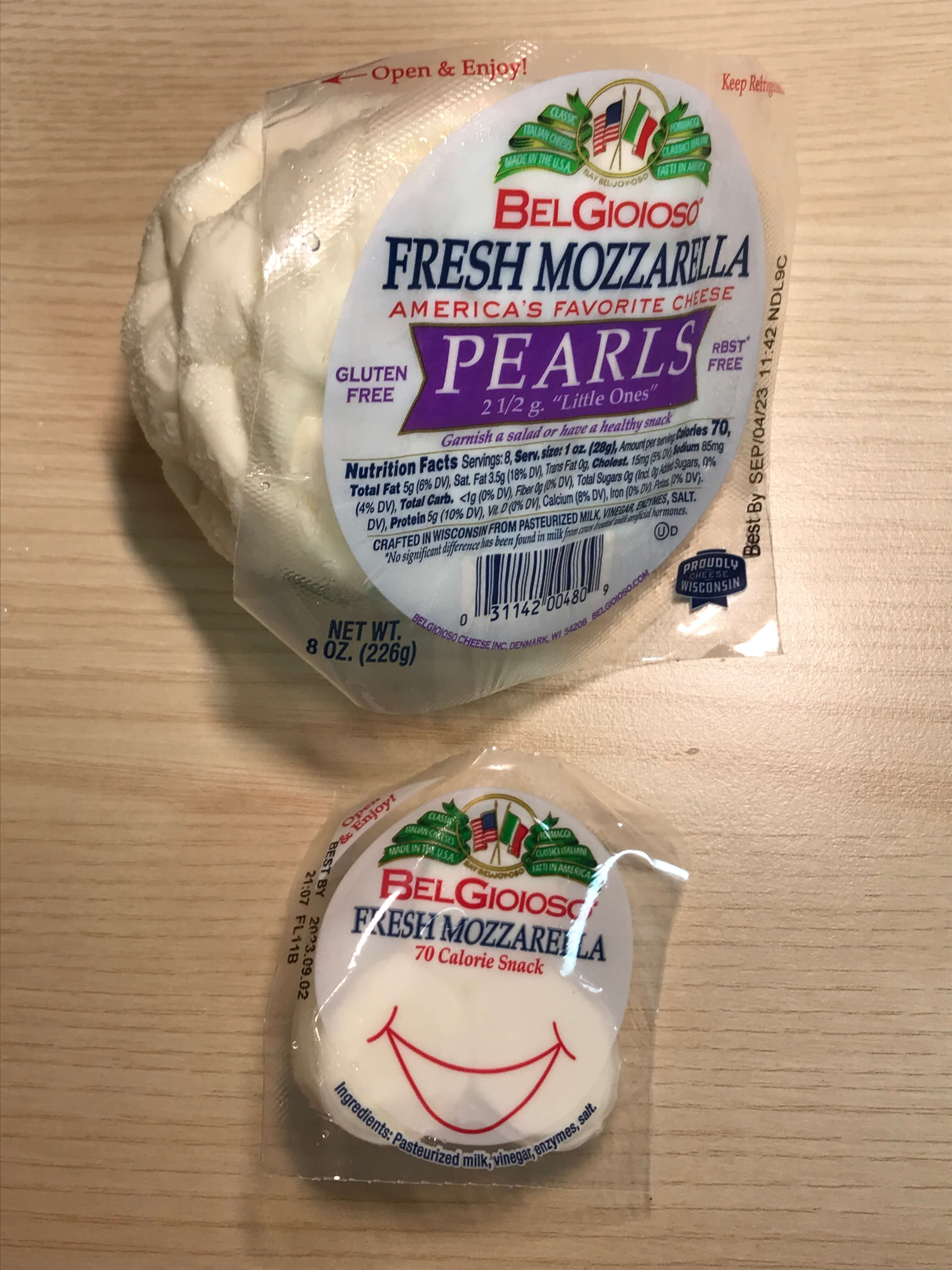 모짜렐라 펄은 많은 양(226g)이 하나로 포장되어 있어 요리 재료로 사용하기에 더 좋을 것 같습니다.